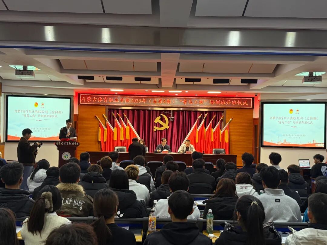 為深入學(xué)習(xí)貫徹習(xí)近平新時(shí)代中國(guó)特色社會(huì)主義思想,積極響應(yīng)青年馬克思主義者培養(yǎng)工程的號(hào)召,培養(yǎng)和造就一批具有堅(jiān)定政治信仰、綜合素質(zhì)過(guò)硬的青年馬克思主義者,11月25日,內(nèi)蒙古體育職業(yè)學(xué)院2025年(總第8期)青年馬克思主義者培養(yǎng)工程學(xué)生骨干培訓(xùn)班開班儀式暨開班第一課,在辦公樓一樓多媒體教室隆重舉行。學(xué)院黨委委員、副院長(zhǎng)白志忠,黨委委員、宣傳統(tǒng)戰(zhàn)部部長(zhǎng)侯英俊,學(xué)工部部長(zhǎng)冬梅出席開班儀式。